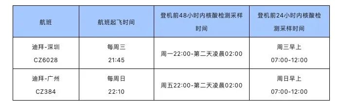所有自阿联酋搭乘航班赴华人员(包括在阿长期居住人员、中资企业人员、国内临时来阿人员、第三国来阿人员)须进行“双核酸”检测: