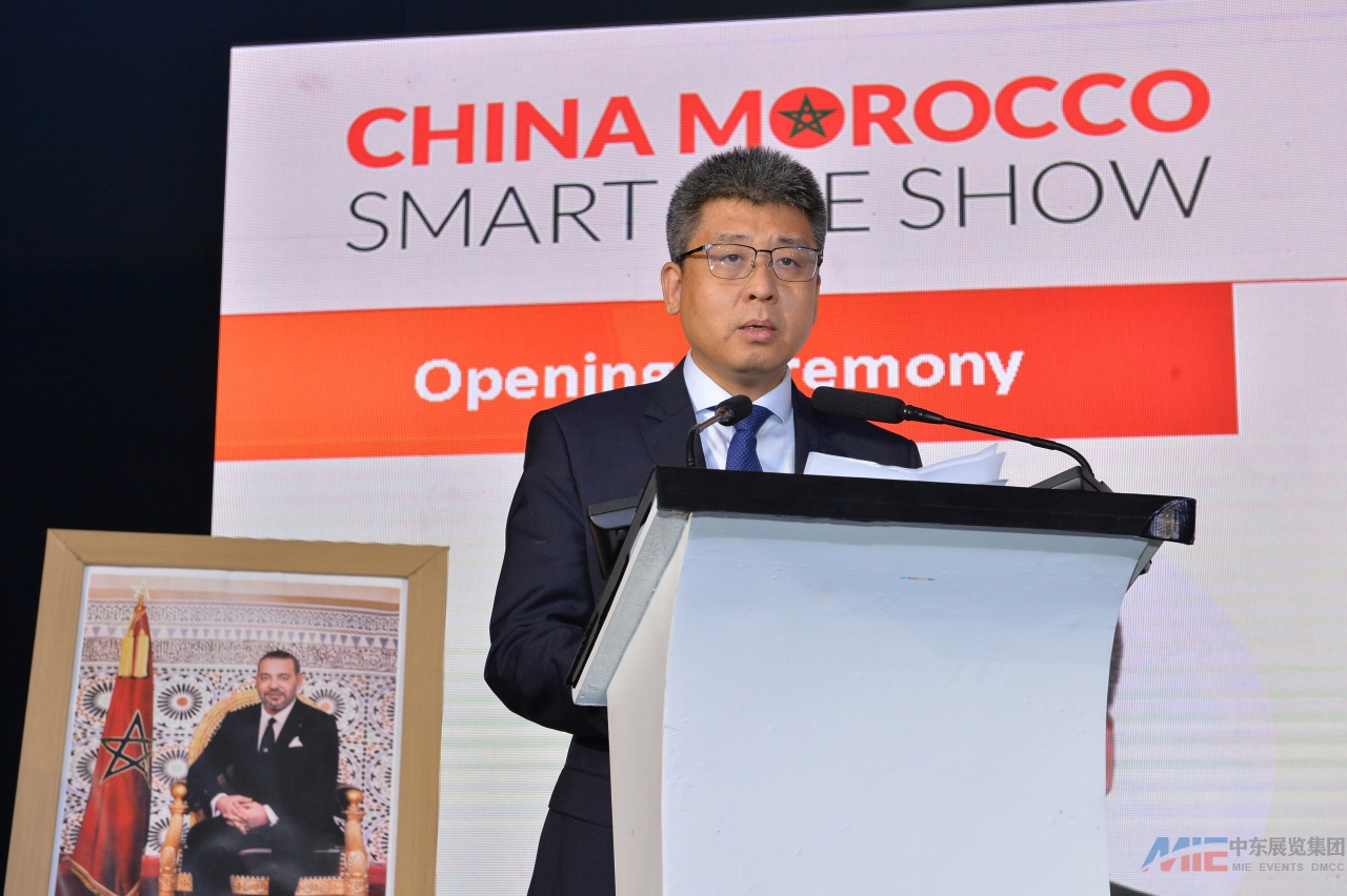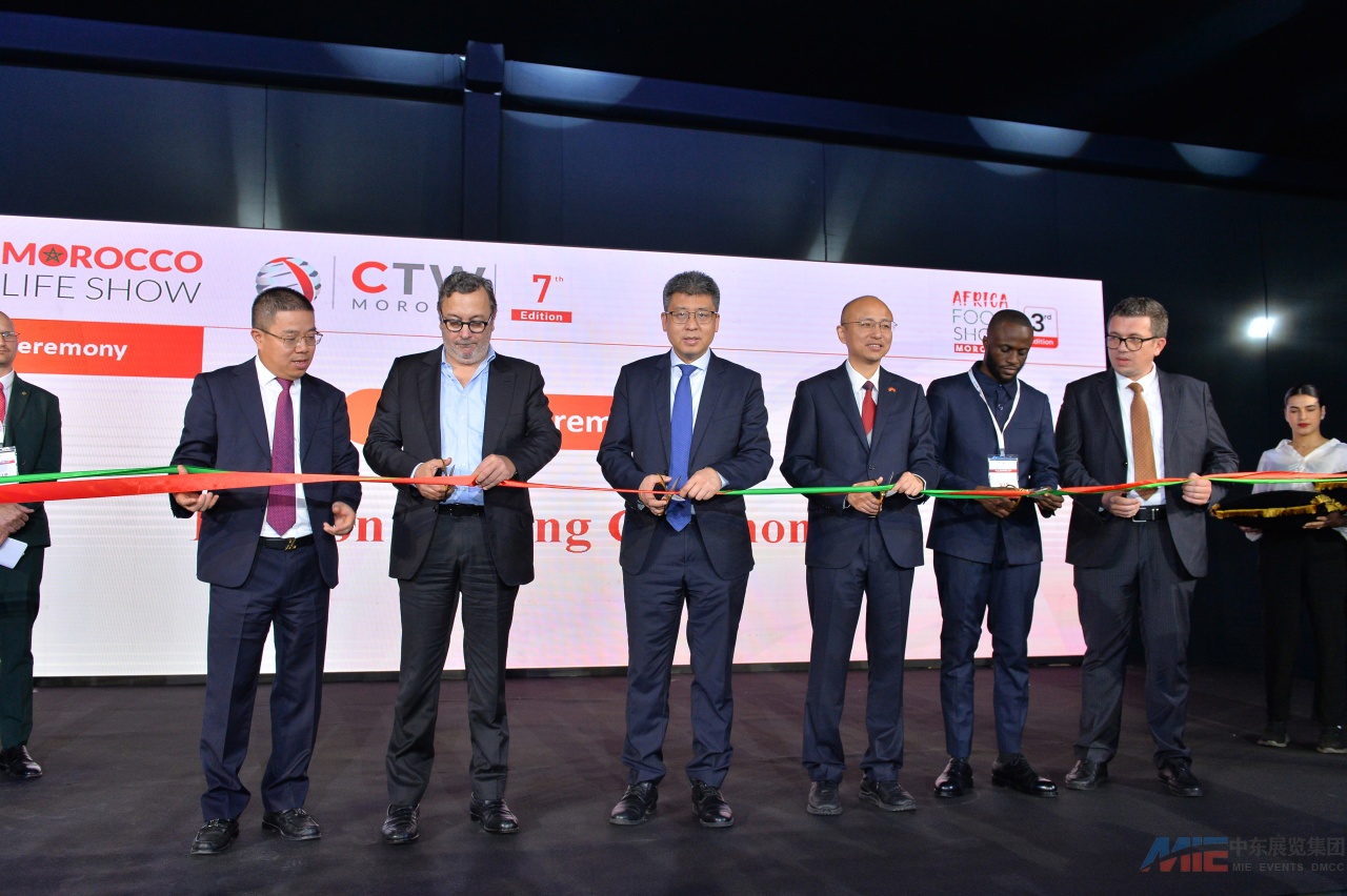 开幕仪式上,商务部对外贸易司副司长孟岳、中国驻摩洛哥使馆经商处参赞郑伟、摩洛哥企业联合总会(CGEM)中摩商业委员会主席迈赫迪・拉腊基、阿尔瓦解决方案与绿色开放实验室首席执行官阿明・扎鲁克、科内克& JLP基金会主席若・伦加拉・帕拉塔先生及MIE集团总裁王海林等中外重要嘉宾出席开幕仪式。