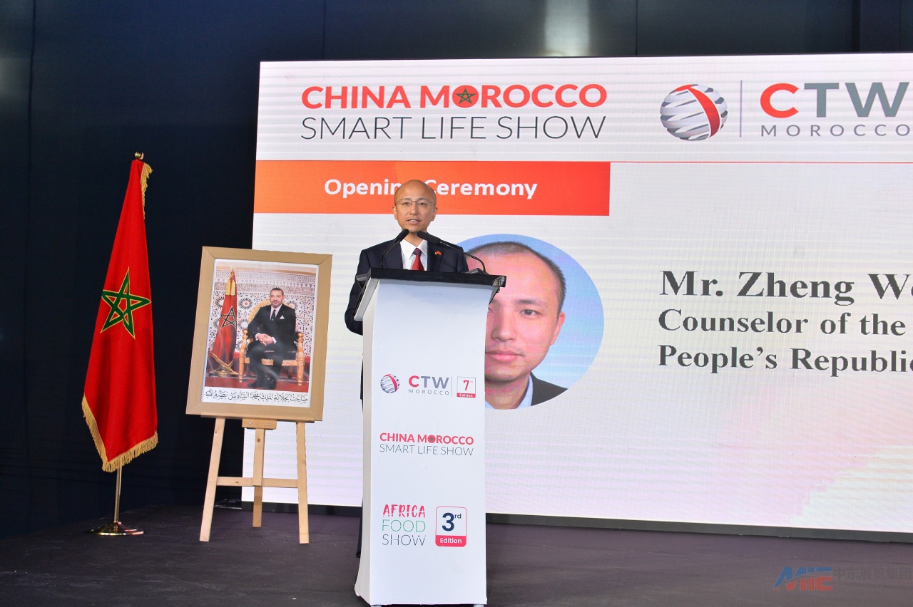 郑伟参赞对展会开幕表示祝贺,称使馆始终将服务中摩经贸合作作为核心职责。摩洛哥作为非洲门户与中国产业优势互补,展会覆盖领域将成双方合作新增长点。他承诺使馆将为两国企业提供全方位支持,助力合作行稳致远。
